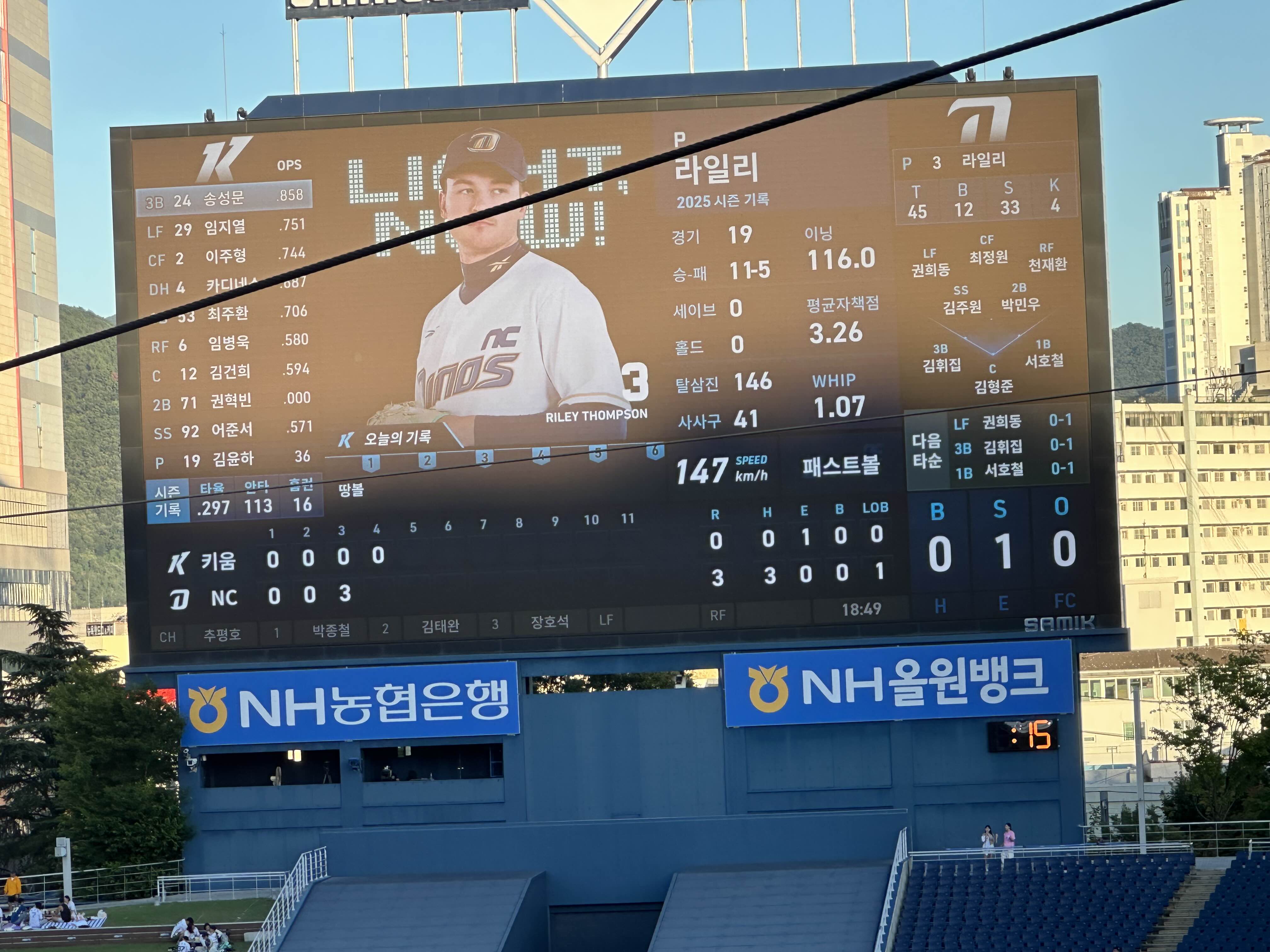 내려온 김에 벼르고 벼르던 NC 파크에 방문했다. 뭐니뭐니해도 여름은 야구가 아니던가. 광팬은 아니었지만 원래는 롯데팬이었고, 내 고향을 연고지로한 NC 다이노스가 생길무렵부터 갈아탈까말까 갈팡질팡하다가 결국 완전히 정착(?)했다.